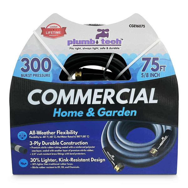 GPT-CGE-16075-(#D1) 75 Ft. x 5/8" Black Rubber Hose, 400 PSI, Hot Water Usage - Home & Commercial Grade
