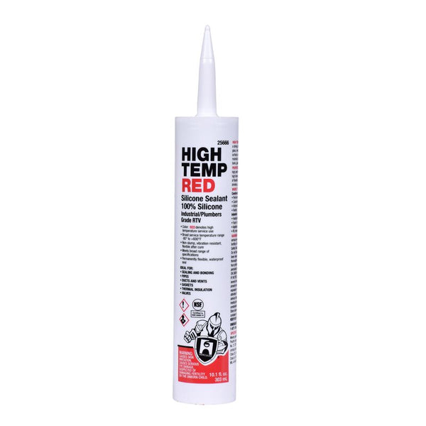 Hercules® 10.1 oz. High Temp Red Silicone Caulk, HIGH PERFORMANCE one-step RED colored 100% silicone sealant for high temperature applications, provides a strong, durable, and flexible seal to wood, glass, metal, porcelain, ceramic, painted surfaces, and many plastics and rubber materials. Performs at temperatures ranging from -80°F to +600°F. Joint movement +/- 25%; superior gunning and tooling; all season ease of application.